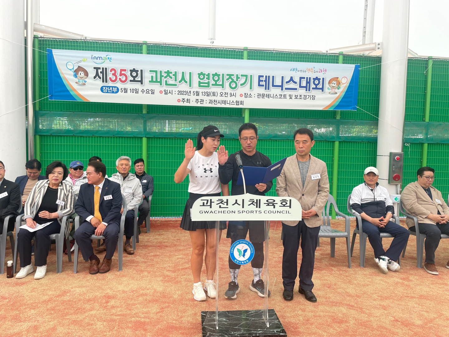 우리 선수들을 대표하여 문원 클럽의 남성, 여성 선수 한분씩 정정당당한 경기를 약속하는 선서도 있었습니다.